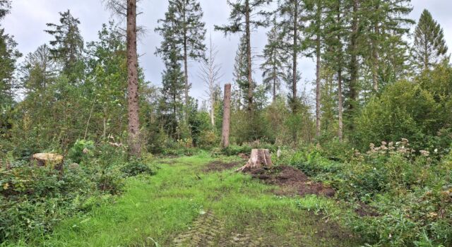 Net als bij de lariksen blijft een deel van de overlevers staan vanwege hun ‘parasolwerking’ voor de jonge boompjes. Die tweede generatie zal hier trouwens niet bestaan uit louter natuurlijke verjonging: op de boomfeestdag worden 5000 fijnsparren door 700 kinderen geplant.