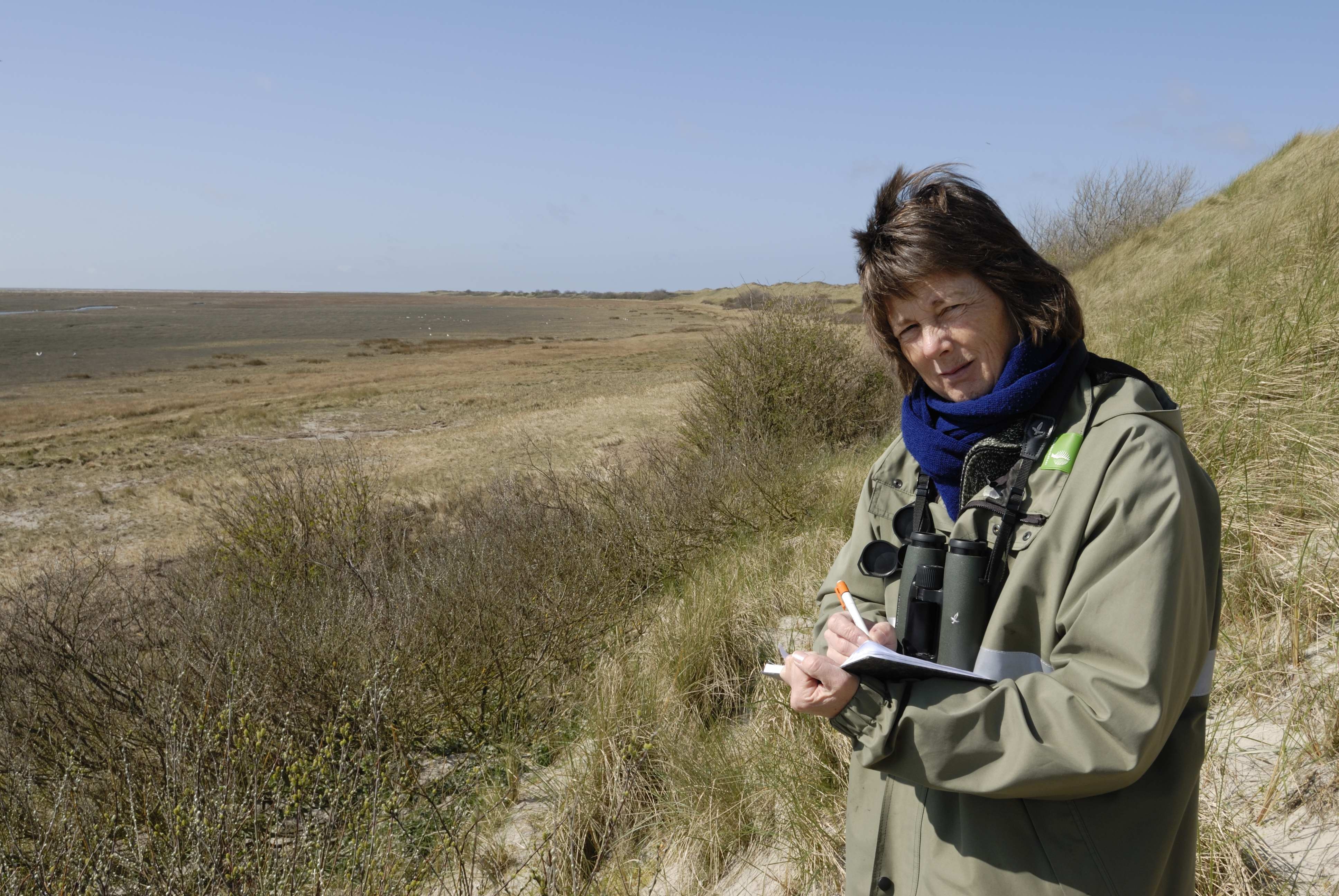 Mijn veldkennis heb ik opgedaan bij de Nederlandse Jeugdbond voor Natuurstudie (NJN). Tijdens de NJN- zomerkampen op Terschelling en Schiermonnikoog raakte ik in de ban van het wad en vooral van steltlopers. Sinds 1972 ben ik als vrijwilliger betrokken bij de (inter)nationale wadvogeltellingen die door Samenwerkende Organisaties Vogelonderzoek Nederland (Sovon) worden gecoördineerd. In de tachtiger jaren nam ik deel aan twee wadvogelexpedities naar Marokko en Mauretanië. Sinds de negentiger jaren doe ik samen met Hans Roersma, mijn partner, aan de Hondsbossche Zeewering kleurringonderzoek aan steenlopers. De steenloper is een steltloper die op de strekdammen langs de dijk in grote aantallen voorkomt. Het werk op Rottumerplaat is voor mij een prachtige kans om een zomer lang aan het wad tussen de steltlopers en broedvogels door te brengen.”