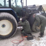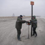 Collega’s Henk en Dennis zijn de bebording aan het plaatsen.