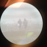 Vogelwachters met de telescoop gespot in een sneeuwbui