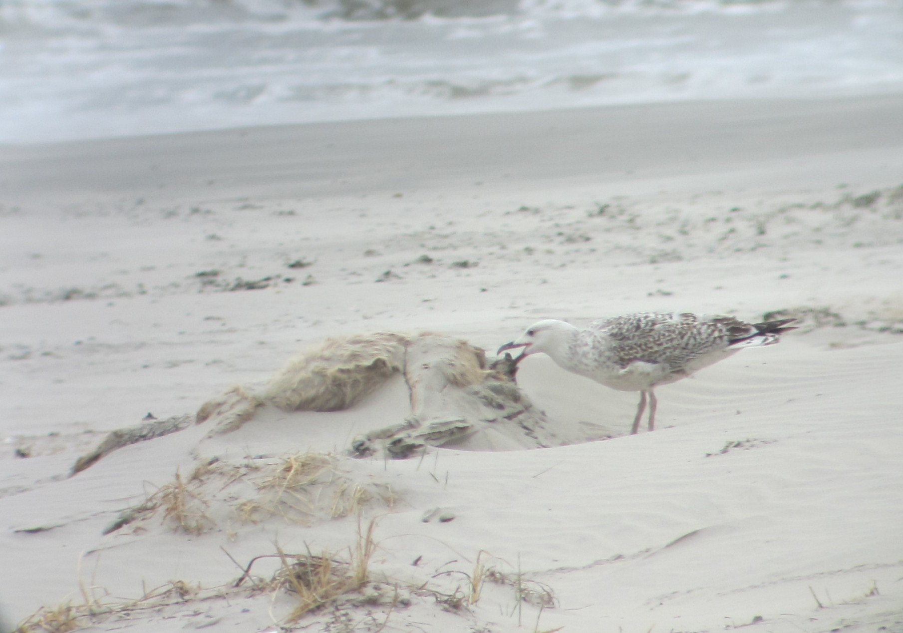 Tot op heden hebben er enkel grote mantelmeeuwen van gegeten. En daar zijn we blij mee, want van deze heel schuwe en ‘gevoelige’ rode lijst-soort (waarvan er slechts 50-55 paren in Nederland broeden) nestelen er maarliefst 5-6 paar op Rottum. Grote mantelmeeuwen zijn de gieren van het wad en met hun indrukwekkende postuur claimen zij elk aangespoeld karkas. Elke andere vogel doet een stap opzij als zo’n gigant nadert. Op dit moment zien we ze vooral van dode zeehonden eten, maar reerug wordt dus ook niet versmaad.