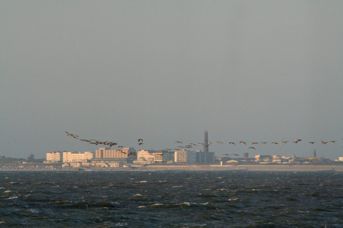 Ruitrek van grote canadese gans voor Borkum (D) Foto: Henk Mellema