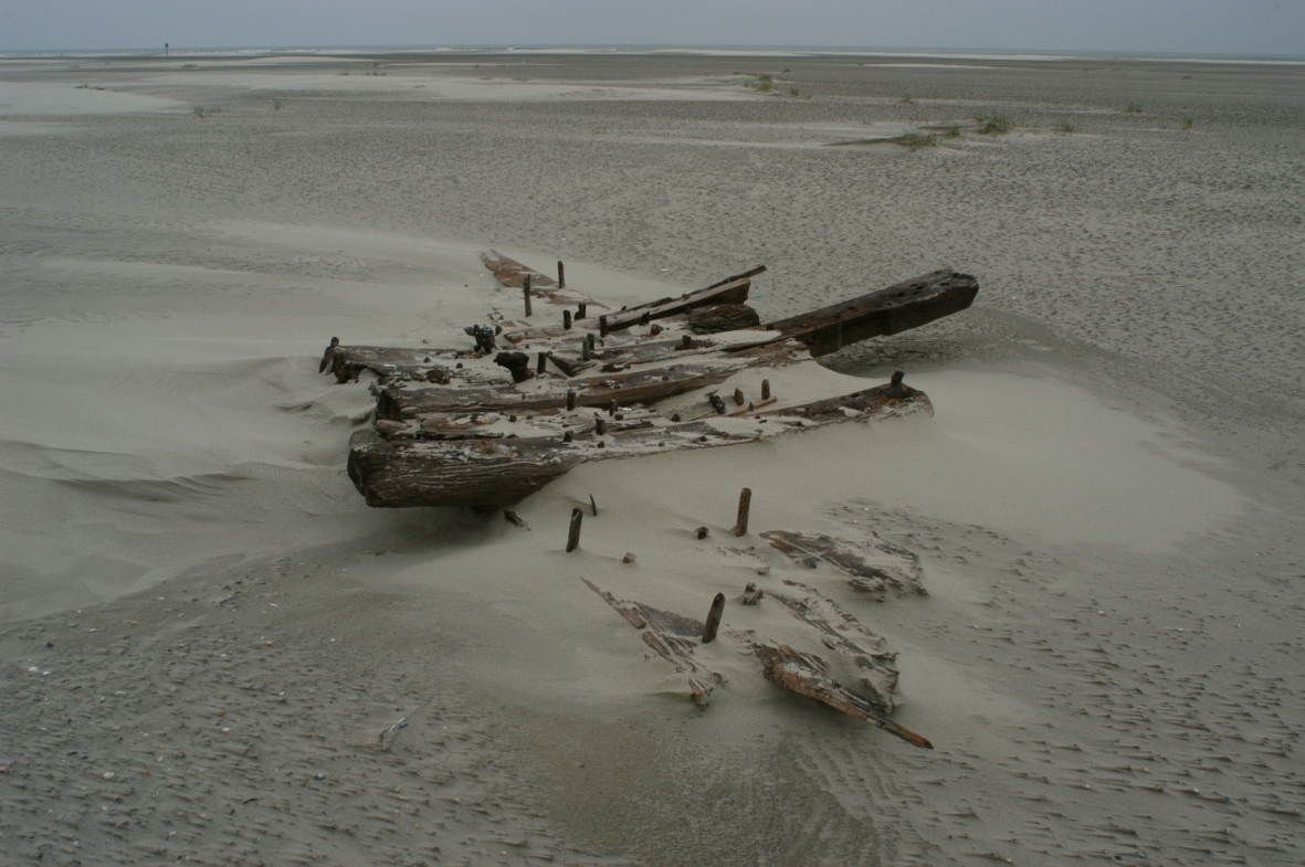 Soms spoelen er houtresten aan, afkomstig van oude scheepswrakken. De aanwezigheid van zwaluwstaarten, houten penverbindingen, lange draadnagels en koperbeslag duiden dan op de oude afkomst. Zelden is dit materiaal nog in goede staat. Ook belanden er soms nog delen van de historische scheepsladingen. Zo vonden we dit seizoen twee aardewerken kruikjes. Het eerste kruikje (links op de foto) betreft een zogenaamd Jacobakannetje, vermoedelijk laat middeleeuws (ongeveer de 15 eeuw). Het kruikje werd geproduceerd in Duitsland nabij Siegburg. Het waren in de middeleeuwen de gangbare kruikjes voor dranken. Het kruikje mist de tuit en het handvat, maar staat verder nog stevig op haar voetstuk. Het tweede kruikje is later vervaardigd. Het heeft een meer ‘moderne’ vorm. Waarschijnlijk is het in de 18e eeuw geproduceerd, in Duingen nabij Hannover. De twee objecten zijn toegezegd aan het archief van het Groninger museum.