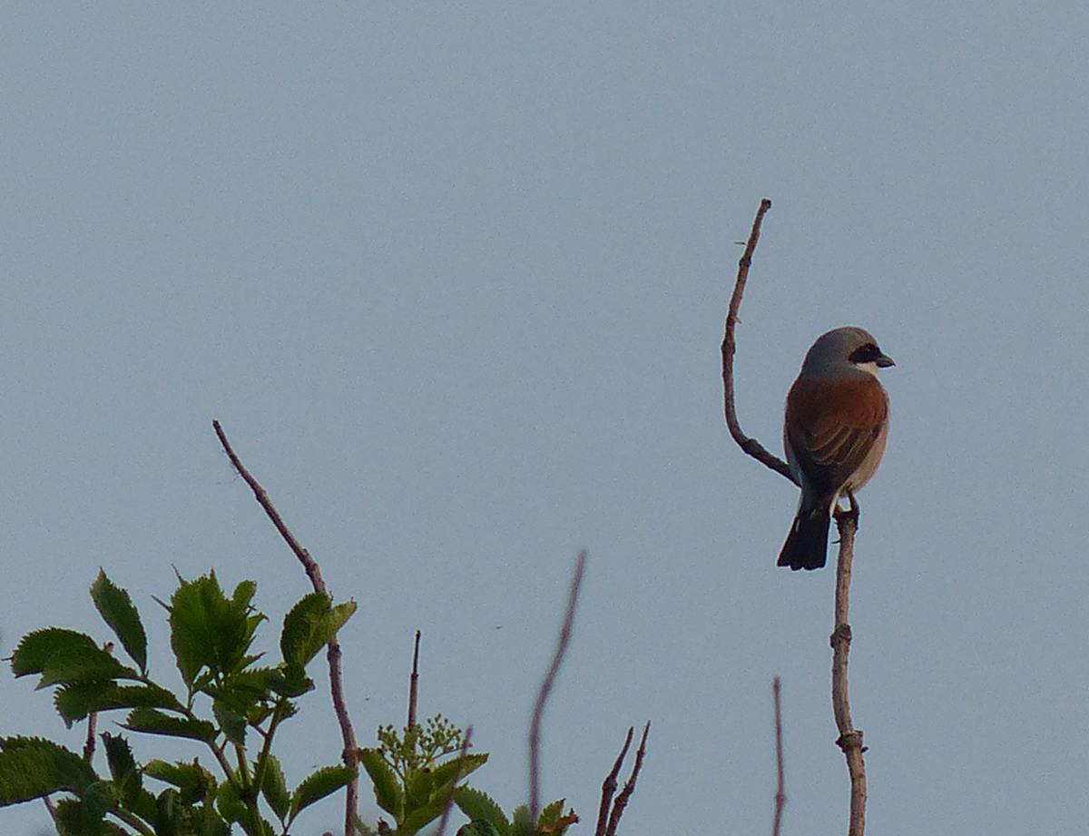 Zo’n tapuit is een vogel die hier algemeen doortrekt, maar dat geldt niet voor de grauwe klauwier, die slechts incidenteel op het eiland wordt waargenomen. Op de foto een mannetje, dat op 31 mei in alle vroegte op de stuifdijk werd waargenomen, en daarna niet meer. Waarschijnlijk al weer verder gevlogen…