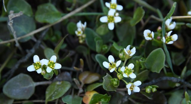 Dinsdag waait er een stevige oostenwind en daardoor voelt het kouder aan dan maandag. Het gebied dat we vandaag doorkruisen is een deel van het eiland waar je alleen kunt komen met laag water. Gelukkig is het tij deze week gunstig voor de monitoringsrondes en lopen we makkelijk de geul door en de kwelder over. Naast de vele meeuwen en graspiepers, noteren we onder meer tureluur, veldleeuwerik, scholekster en slechtvalk. Tussen de verdorde zeekraal zien we per dag de nieuwe, frisgroene vegetatie opkomen en vandaag vinden we op dit deel van de kwelder het schaarse Engels lepelblad.