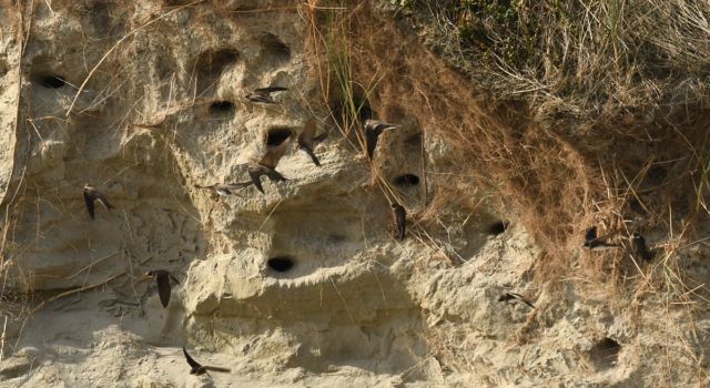 Op woensdag lijken de korte nachten gaan ons een beetje op te breken. We zijn steeds best tot laat bezig om alle gegevens uit te werken en de foto’s uit te zoeken. Beiden hebben we daardoor een wat kort lontje: krijg je dat automatisch als je vier weken met elkaar werkt en leeft zonder dat er andere mensen in je omgeving zijn, je naar je werk gaat en je op je fietsje nog even een boodschapje kunt doen? Maar er is hier zoveel moois: we ontdekken op de terugweg dat de oeverzwaluwen in een stijl stukje van de Stuifdijk hun nesten aan het bouwen zijn en het mooie weer brengt allemaal insecten en vlinders naar het eiland. Dat maakt het lontje meteen weer een stuk langer 😉