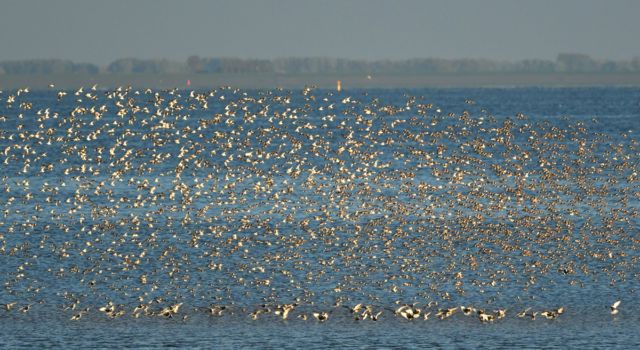 De komst van de visdieven lijkt er bij hoogwater ineens voor te zorgen dat andere soorten ook hun positie/nestplek op diezelfde puindam willen veiligstellen. Niet eerder zagen we met hoogwater de kokmeeuwen en de scholeksters zo prominent paarsgewijs rusten op de puindammen. Zouden ze de concurrentie om de beste plekjes nu ineens gaan voelen?