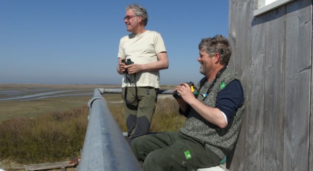 Wij zijn hier te gast. De hoofdbewoners van Rottumerplaat zien we overal om ons heen. Rond de toren kwettert al een uur een hectische groep scholeksters. Langs de wadgeul lopen tureluurs, rotganzen en brandganzen, erin dobberen pijlstaarten en wintertalingen. Een vrouwtje blauwe kiekendief – die met een witte band over haar staart – vliegt langs. Nu, vroeg in het voorjaar, broeden als eerste de grauwe ganzen. In de duinen lopen we hun gele kuikens tegen het lijf. Rottumerplaat laat ons dagelijks zien hoe belangrijk rust is voor vogels. Hier mogen ze ongestoord broeden, uitrusten en bijtanken voor of na hun lange vliegreis. Rust kan voor hen van levensbelang zijn. Gaan wadvogels door een onnodige menselijke verstoring op de vleugels, dan vergt dat ontzettend veel energie. “Eén minuut paniekvlucht kost weer een extra uur eten zoeken”, legt Frank me uit. We zijn benieuwd welke verrassingen ons te wachten staan.
